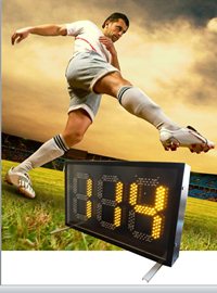 OnSite 30 Soccer is high quality speed display for sports applications. Display is equipped with two or four radars and three 30 cm high digits. System is suitable for measuring and displaying accurately e.g. Soccer ball speeds. If multiple radars detect the speed, system will automatically display the highest seed reading. System is suitable for measuring and displaying soccer ball speeds in professional level coaching, practicing and matches.